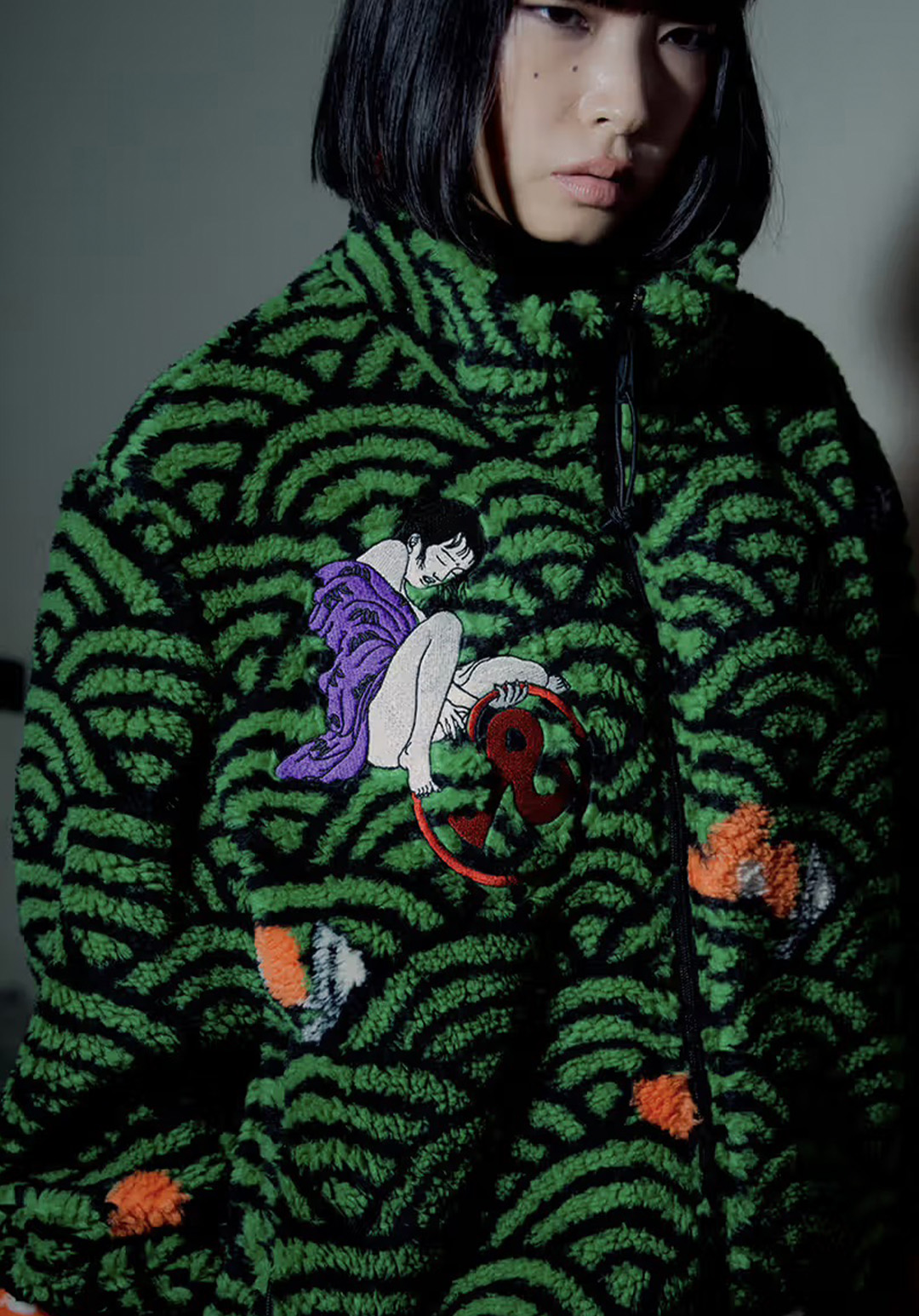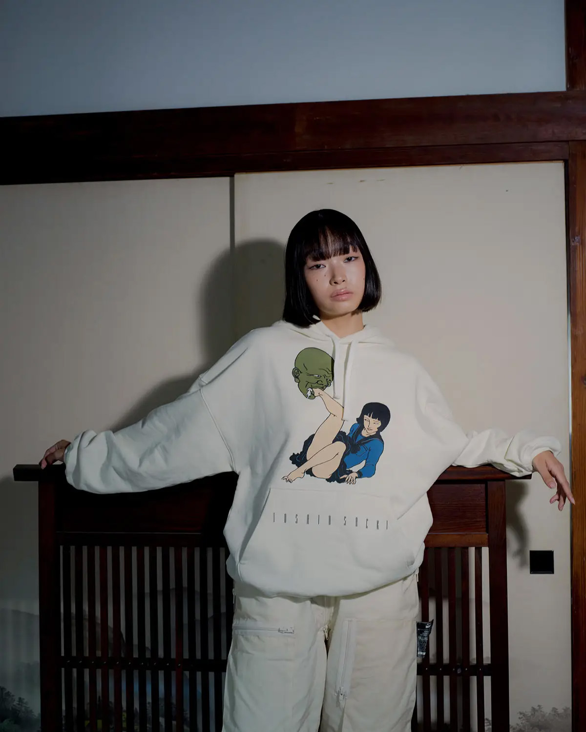 A collaboration between Richardson and Japanese artist Toshio Saeki, reinterpreting his surreal, erotic illustrations through high-end streetwear. Responsible for art direction and graphic design, including research into Saeki’s archives, development of production-ready artwork for print and embroidery, and coordination with overseas factories to ensure high-quality execution from concept to final garment.